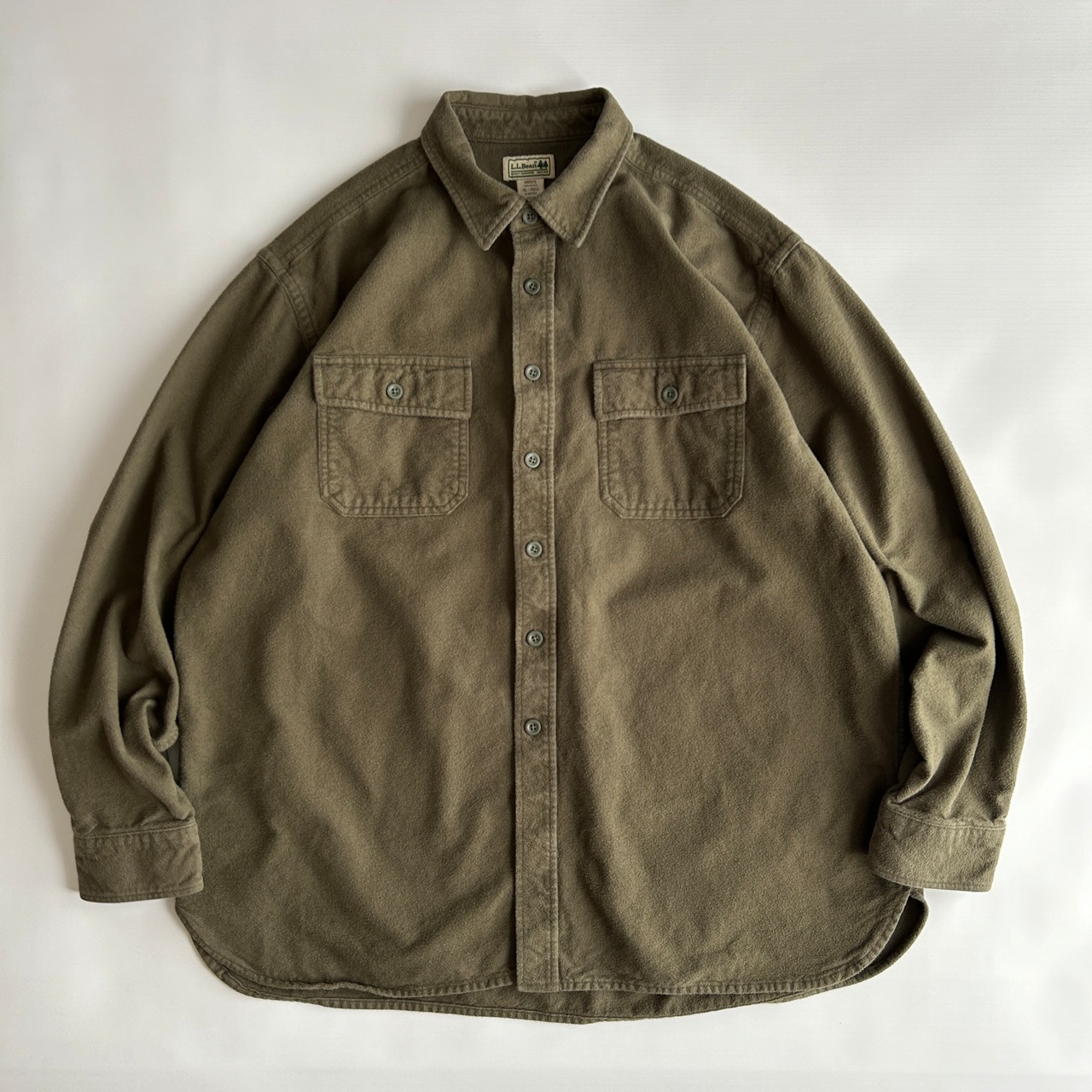L.L.Beanのシャモアクロスシャツは肉厚かつ柔らかい質感に、サイドスリットがあるボックスタイプの裾で、使いやすいシルエットが特徴です。
